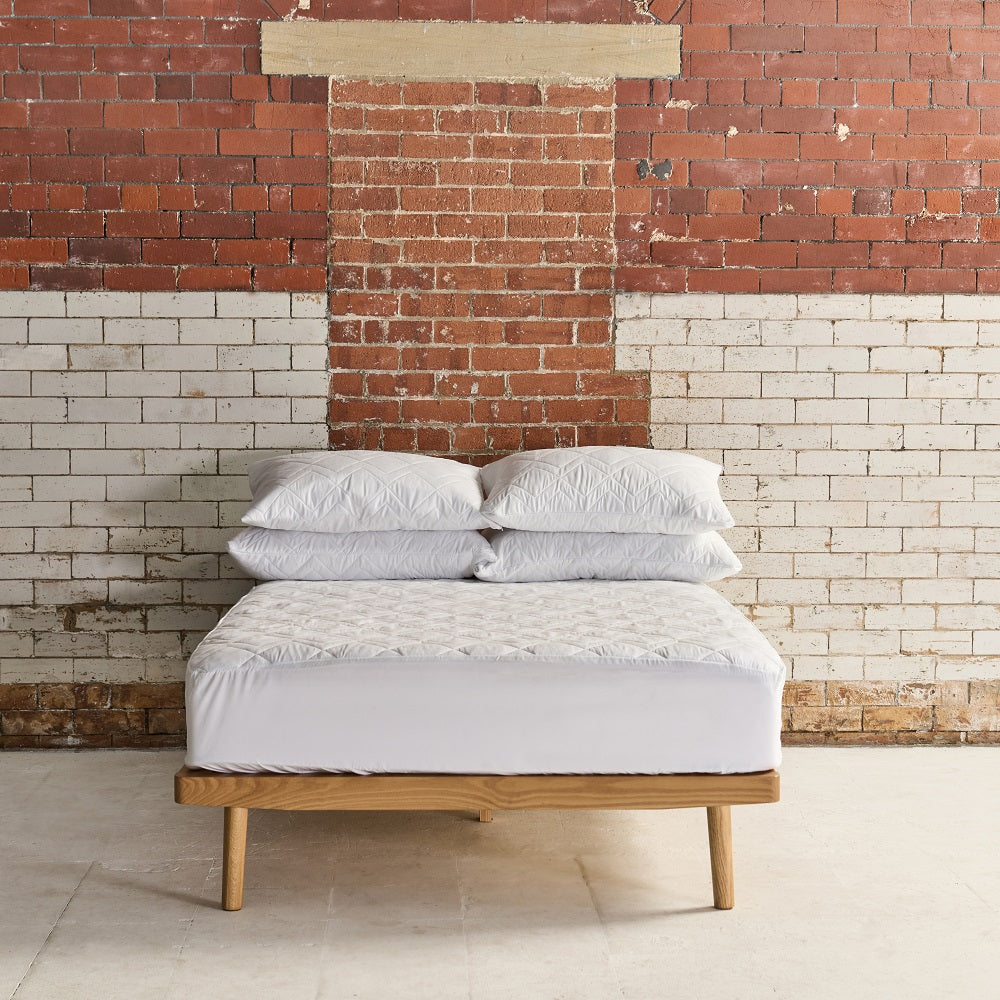 Our brand new mattress protector has an anti allergy aloe vera treatment that is carefully stitched into stylish double bar geometric compartments of microfibre fabric. This keeps the quilting perfectly even. The exterior fabric is made of extra soft silk touch microfibre which provides a luxurious touch to the protector that is filled with recycled polyester fibre.